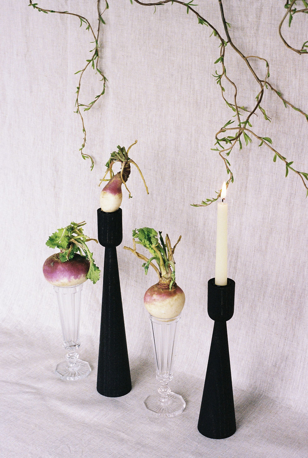 Conceptualisés et tournés en Belgique, ces chandeliers sont réalisés en chêne local soigneusement sélectionné.
